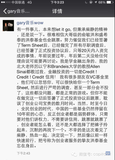 昨日,星聚科技CEO陳戈抱怨一家沒(méi)有信用的不靠譜基金,以下是他的原話: