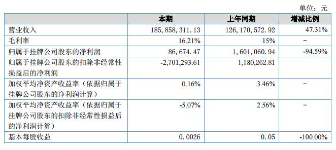 挖貝網(wǎng)09月3日,匯偉股份(證券代碼:871947)近日公布的2018年半年報顯示,截至2018年6月30日,企業(yè)實現(xiàn)營收1.86億元;歸屬于掛牌公司股東的凈利潤為86,674元。
