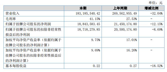 報(bào)告期內(nèi),醇醚汽油產(chǎn)品銷售收入達(dá)到121,083,268.43元,較去年同期增長69.76%;其他化工原料產(chǎn)品銷售收入壓縮至22,147,756.49元,較去年同期下降83.22%;醇醚柴油產(chǎn)品受市場(chǎng)行情波動(dòng)影響,上半年銷售收入為39,954,515.5元,較去年同期下降39.67%。受此影響,2018年上半年公司實(shí)現(xiàn)營業(yè)收入183,185,540.42元,較去年同期下降32.04%;毛利率41.15%,較去年同期增長13.62個(gè)百分點(diǎn);歸屬于掛牌公司股東的凈利潤18,843,583.45元,較去年同期下降12.15%。?