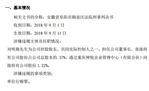 挖貝網(wǎng) 9月5日消息,新三板掛牌企業(yè)神州能源(837934)原董事長劉明燕因行賄被判有期徒刑1年,并處罰金20萬。