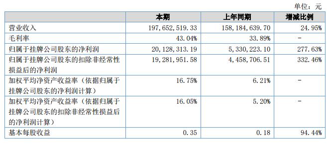 挖貝網(wǎng)9月5日,創(chuàng)富港(證券代碼:836090)近日公布的2018年半年報顯示,截至2018年6月30日,企業(yè)實現(xiàn)營收1.98億元;歸屬于掛牌公司股東的凈利潤為2012.83萬元。