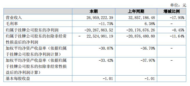 報告期內公司實現(xiàn)營業(yè)收入2,695.92萬元,同比下降17.95%;營業(yè)總成本4579.67萬元,同比下降8.76%;營業(yè)利潤-1983.82萬元,同比下降22.05%;凈利潤-2054.59萬元,同比下降1.71%。?