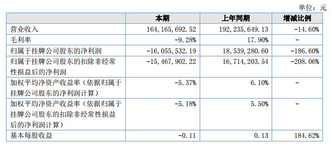 報告期內公司實現營業(yè)收入16,416.57萬元,同比減少14.60%;營業(yè)利潤-3,394.82萬元,同比減少292.42%;凈利潤-1482.37萬元,同比減少176.42%;經營活動產生的現金凈流量-40.76萬元,同比減少100.91%。