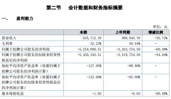 2018 上半年歸屬于掛牌公司股東的凈資產(chǎn)為 1,479,302.44 元,較期初減少 78.03%,主要原因系公司上半年凈利潤為-5,254,000.51 元,導致未分配利潤相較期初大幅減少所致。