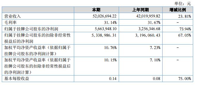挖貝網(wǎng)9月11日,匯龍液壓(證券代碼:839266)近日公布的2018年半年報(bào)顯示,截至2018年6月30日,企業(yè)實(shí)現(xiàn)營(yíng)收5202.67萬(wàn)元;歸屬于掛牌公司股東的凈利潤(rùn)為566.39萬(wàn)元。