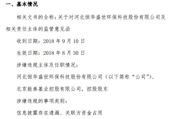 挖貝網(wǎng)訊 2018年9月12日消息,新三板掛牌公司恒盛環(huán)保(832231)控股股東占用公司孫公司資金,公司和控股股東被股轉(zhuǎn)處罰。