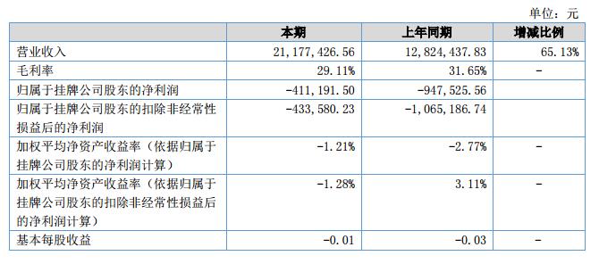 報(bào)告期內(nèi),公司實(shí)現(xiàn)營業(yè)收入2,117.74萬元,同比增長65.13%。凈利潤為-41.12萬元,相比同期虧損有所收窄。?
