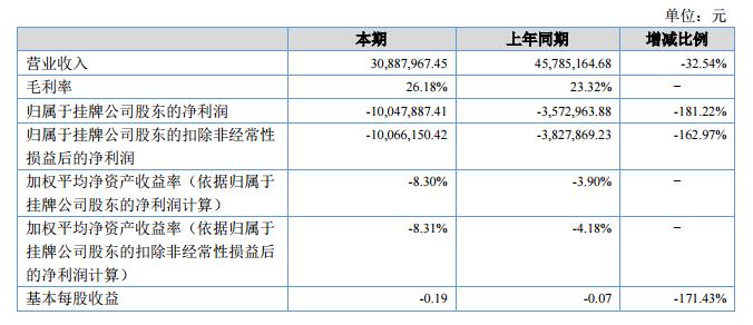 報(bào)告期內(nèi),公司按照年初制定的經(jīng)營(yíng)計(jì)劃開(kāi)展各項(xiàng)業(yè)務(wù)。2018年上半年,公司營(yíng)業(yè)收入3,088.80萬(wàn)元,較去年同期下降32.54%。報(bào)告期,歸屬于掛牌公司股東的凈利潤(rùn)-1,004.79萬(wàn)元,較去年同期下降181.22%。?