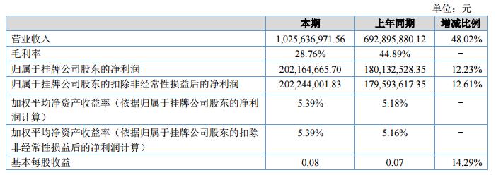 公司實現(xiàn)營業(yè)收入1,025,636,971.56元,同比增長48.02%;發(fā)生營業(yè)成本730,709,563.42元,同比增長91.37%;歸屬于公司股東的凈利潤202,164,665.70元,同比增長12.23%。截止2018年6月30日,公司資產(chǎn)總額達32,637,792,736.33元,負(fù)債總額28,782,789,349.99元,所有者權(quán)益3,855,003,386.34元。2018年1-6月公司經(jīng)營活動產(chǎn)生的現(xiàn)金流量凈額230,482,454.57元,較去年同期年減少3.33%。?