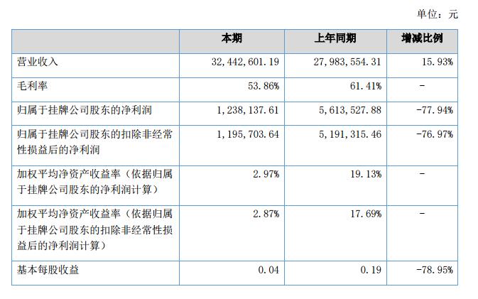 2018年上半年,公司實現(xiàn)銷售收入3244.26萬元,同比2017年上半年增長15.93%,公司實現(xiàn)凈利潤123.80萬元,同比2017年上半年下降77.95%。?
