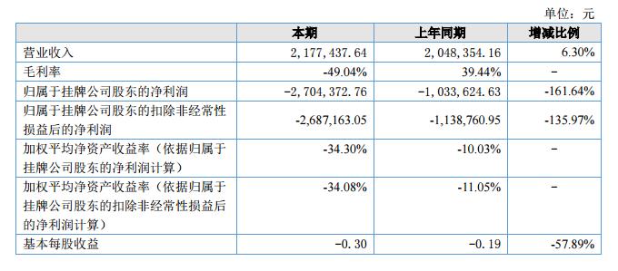 報(bào)告期內(nèi),公司總資產(chǎn)1115.30萬元,較期初減少394.25萬元,下降26.12%。主要原因是本期結(jié)轉(zhuǎn)前期預(yù)付賬款、歸還往來款、稅款及計(jì)提應(yīng)收賬款壞賬準(zhǔn)備所致。報(bào)告期內(nèi)實(shí)現(xiàn)營業(yè)收入217.74萬元,較上年同期增加12.91萬元,同比上升6.30%,營業(yè)收入基本穩(wěn)定。報(bào)告期內(nèi)發(fā)生主營業(yè)務(wù)成本324.52萬元,較上年同期增加200.46萬元,同比上升161.59%,主要原因是前期預(yù)付項(xiàng)目款的結(jié)轉(zhuǎn)以及人力成本的增加所致。報(bào)告期內(nèi)實(shí)現(xiàn)歸屬于掛牌公司股東的凈利潤-270.44元,較上年同期減少167.07萬元,同比下降161.64%,主要原因是受主營業(yè)務(wù)成本增加所致。?