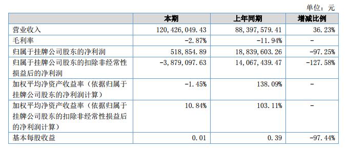 挖貝網(wǎng)9月14日,ST國龍(證券代碼:831366)近日公布的2018年半年報(bào)顯示,截至2018年6月30日,企業(yè)實(shí)現(xiàn)營收1.2億元;歸屬于掛牌公司股東的凈利潤為51.88萬元。