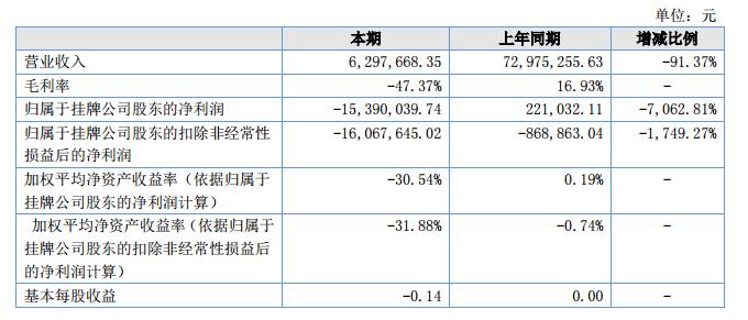 挖貝網(wǎng)9月14日,大盛新材(證券代碼:835647)近日公布的2018年半年報(bào)顯示,截至2018年6月30日,企業(yè)實(shí)現(xiàn)營(yíng)收629.77萬(wàn)元;歸屬于掛牌公司股東的凈利潤(rùn)為-1539萬(wàn)元。