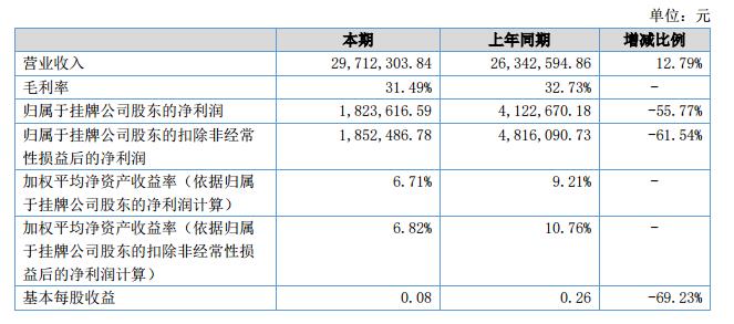 2018年1-6月實(shí)現(xiàn)銷(xiāo)售收入29,712,303.84元,比去年同期26,342,594.86元增加3,369,708.98元,較去年同期增加12.79%。主要原因是公司本期竣工驗(yàn)收項(xiàng)目較上年同期增加所致。營(yíng)業(yè)成本:2018年1-6年發(fā)生營(yíng)業(yè)成本20,355,727.77元,比去年同期17,719,497.10元增加2,636,230.67元,較去年同期增加14.88%,主要是因?yàn)楸酒诳⒐を?yàn)收項(xiàng)目增加,所對(duì)應(yīng)結(jié)轉(zhuǎn)的成本亦增加。凈利潤(rùn)2018年1-6月實(shí)現(xiàn)凈利潤(rùn)1,823,616.59元,比去年同期4,122,670.18元減少-2,299,053.59元,主要原因:一方面,由于2018年1-6月支付公司掛牌中介機(jī)構(gòu)服務(wù)費(fèi)用增加,從而導(dǎo)致管理費(fèi)用增加所致;另一方面,受2018年1-6月2017年1-6月少數(shù)股東損益變動(dòng)的影響。?