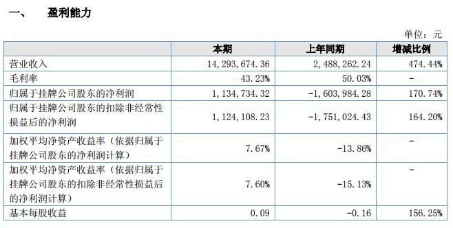 報告期內(nèi),公司實現(xiàn)凈利潤為 113.47 萬元,較上年同期增長 170.74%。主要原因為:本期營業(yè)收入增加了 1,180.54 萬元,營業(yè)總成本增加了 893.03 萬元,投資收益增加 4.45 萬元,所得稅增加 17.85 萬元所致。