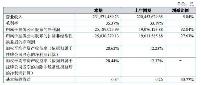 報(bào)告期內(nèi),公司實(shí)現(xiàn)營業(yè)收入231,571,489.23元,較去年同期增長5.04%;凈利潤25,189,025.93元,較去年同期增長32.04%;公司總資產(chǎn)期末為514,357,885.46元,較上年期末增長4.80%。?