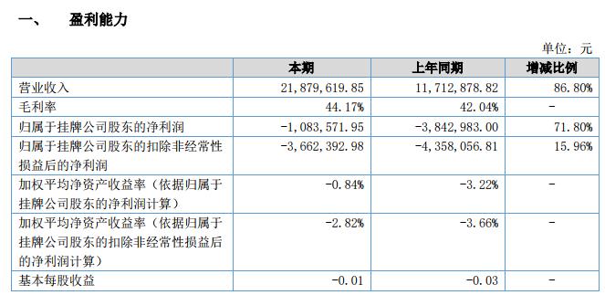 公司 2018 年上半年實現(xiàn)營業(yè)收入 2187.96 萬元,營業(yè)收入同比增長 86.80%,歸屬于掛牌公司股東的凈利潤同比增長 71.80%。其原因在于道路施工的季節(jié)性特征導致報告期內部分施工企業(yè)開工較早,對水泥碎石穩(wěn)定混合料、商品混凝土、水泥制管等產品需求較去年同期有所增加,公司產品營業(yè)收入增長率和凈利潤增長率均大幅度提高。公司主要營業(yè)收入和利潤集中在 4-11 月份,報告期內公司凈利潤為-108.36 萬元,主要是受公司季節(jié)性停工影響,停工期間費用達 203.32 萬元等綜合因素導致凈利潤出現(xiàn)負值。報告期內公司負債同比增長 50.45%,主要原因在于公司備料支出增長及報告期內公司員工大幅度增加,應付工資上漲。