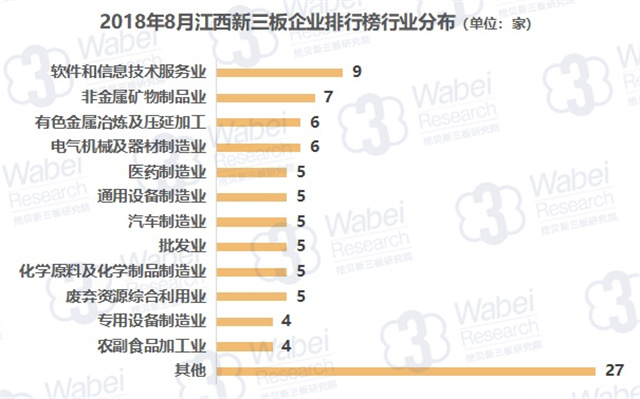 從行業(yè)分布來看,軟件和信息技術(shù)服務(wù)業(yè)的企業(yè)數(shù)量最多,有9家企業(yè);其次是非金屬礦物制品業(yè)行業(yè),有7家企業(yè)。(來源:挖貝新三板研究院)