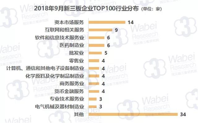 從行業(yè)分布來看,資本市場服務(wù)行業(yè)企業(yè)數(shù)量最多,有14家企業(yè);其次是互聯(lián)網(wǎng)和相關(guān)服務(wù),有9家企業(yè);醫(yī)藥制造業(yè)、軟件和信息技術(shù)服務(wù)業(yè)排名第三,均有6家企業(yè)。(來源:挖貝新三板研究院)
