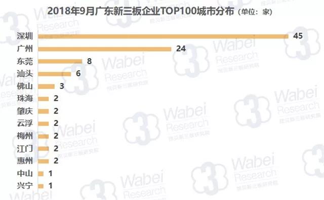 截止到2018年9月30日,新三板共有10946家掛牌公司,廣東有1700家新三板企業(yè),占比15.5%;其中984家企業(yè)有市值,占比57.9%。