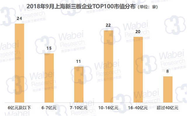 TOP100上榜門檻為5.09億元,其中有8家企業(yè)市值超過40億元,而市值在6億元及以下、6-7億元、7-10億元、10-16億元、16-40億元的企業(yè)分別有24家、15家、11家、22家、20家。