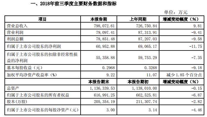 快報顯示,2018年前三季度實現(xiàn)營業(yè)收入79.81億元,同比增長9.81%,其中實現(xiàn)出口營業(yè)收入45.02億元,同比增長20.45%;實現(xiàn)歸屬于母公司的凈利潤6.10億元,同比下降11.75%;實現(xiàn)扣非后歸屬母公司凈利潤5.54億元,同比下降7.35%。