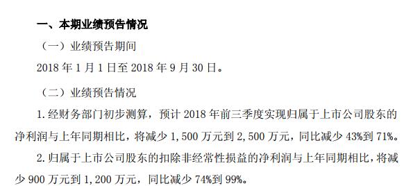 華儀電氣稱,經(jīng)財務(wù)部門初步測算,預(yù)計2018年前三季度實現(xiàn)歸屬于上市公司股東的凈利潤與上年同期相比,將減少1,500萬元到2,500萬元,同比減少43%到71%。歸屬于上市公司股東的扣除非經(jīng)常性損益的凈利潤與上年同期相比,將減少900萬元到1200萬元,同比減少74%到99%。