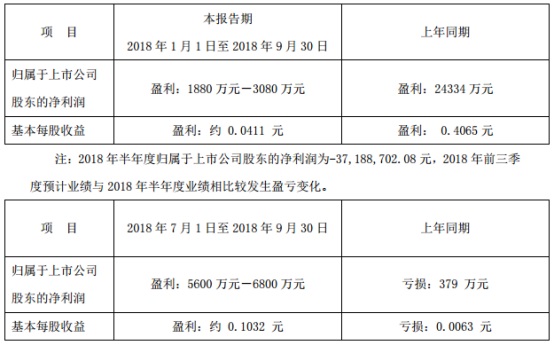 遠大控股前三季度業(yè)績預告顯示,前三季度,公司預計實現(xiàn)凈利潤1880萬元至3080萬元,同比下滑近九成;第三季度,公司預計盈利5600萬元至6800萬元,扭虧為盈。