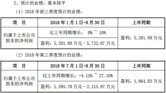 前三季度,盈利為5201.88萬元–5722.07萬元,比上年同期增長(zhǎng)為0%—10%,去年同期為5201.88萬元。
