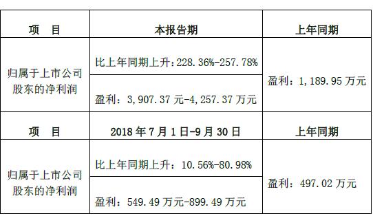前三季度利潤為3,907.37元-4,257.37萬元,同比增長228.36%-257.78%,上一年同期為1,189.95萬元。