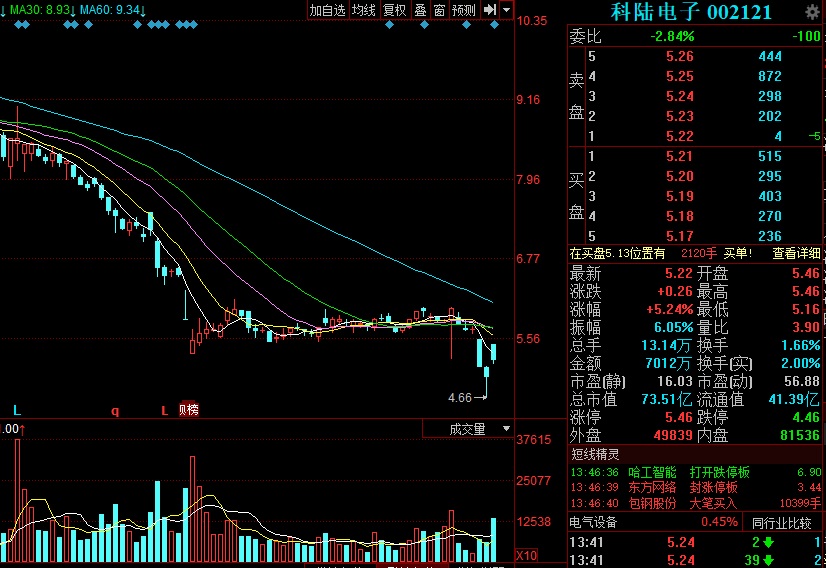 今日,科陸電子漲停開(kāi)盤(pán),高開(kāi)低走,截至發(fā)稿,股價(jià)為5.22元/股,漲5.24%。按去年6月公司員工買(mǎi)入股票時(shí)均價(jià)8.84元/股計(jì)算,持股至今,員工已虧損超40%。