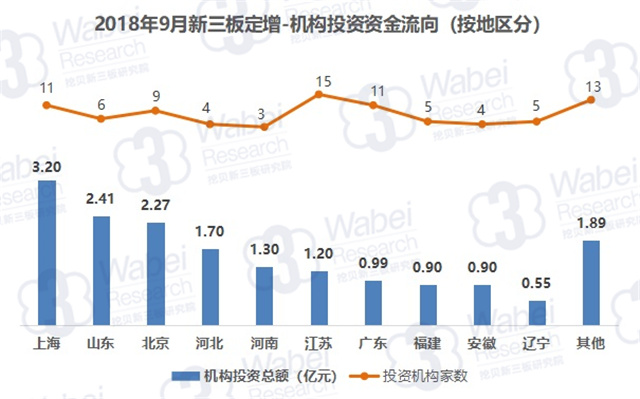 2018年9月,新三板企業(yè)共定增募資34.65億元,其中,機(jī)構(gòu)對(duì)企業(yè)投資17.30億元,環(huán)比降30%。機(jī)構(gòu)投資總額占新三板企業(yè)募資總額的50%。