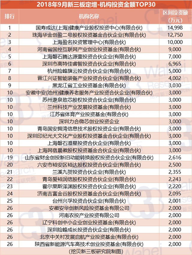 附:2018年9月新三板定增-機(jī)構(gòu)投資金額TOP30