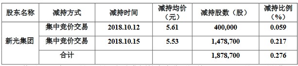 因股票質押回購交易業(yè)務違約,2018 年10 月12日、10月15日,信達證券累計處置股票187.7萬股,從而導致新光集團被動減持本公司股份0.28%的情形。