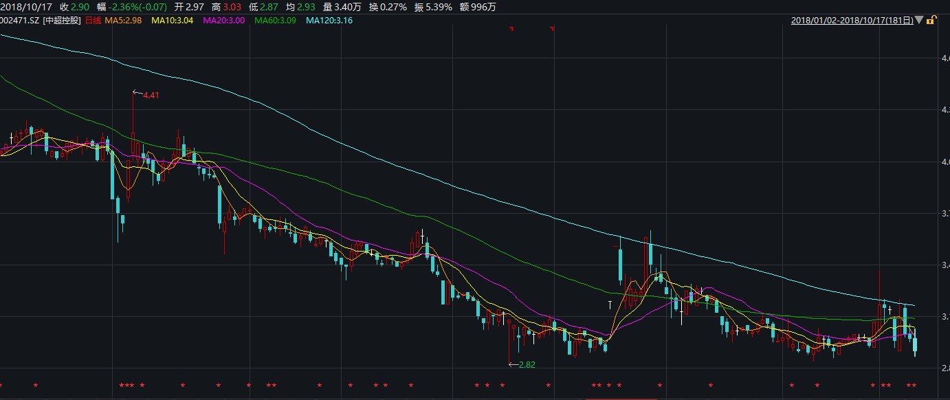 受此影響,截止10月17日上午10時(shí)50分許,中超控股股價(jià)報(bào)2.9元/股,跌幅2.4%,已經(jīng)接近其年內(nèi)最低價(jià)2.82元/股。