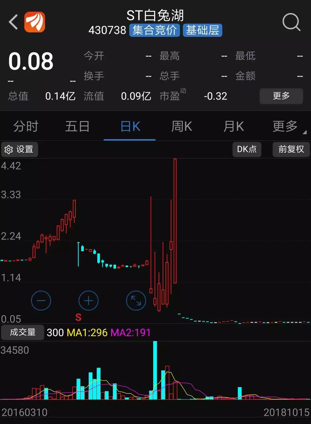 2018年10月15日,白兔湖收盤(pán)價(jià)僅有0.08元/股。據(jù)此計(jì)算,上海元優(yōu)浮虧已超95%。