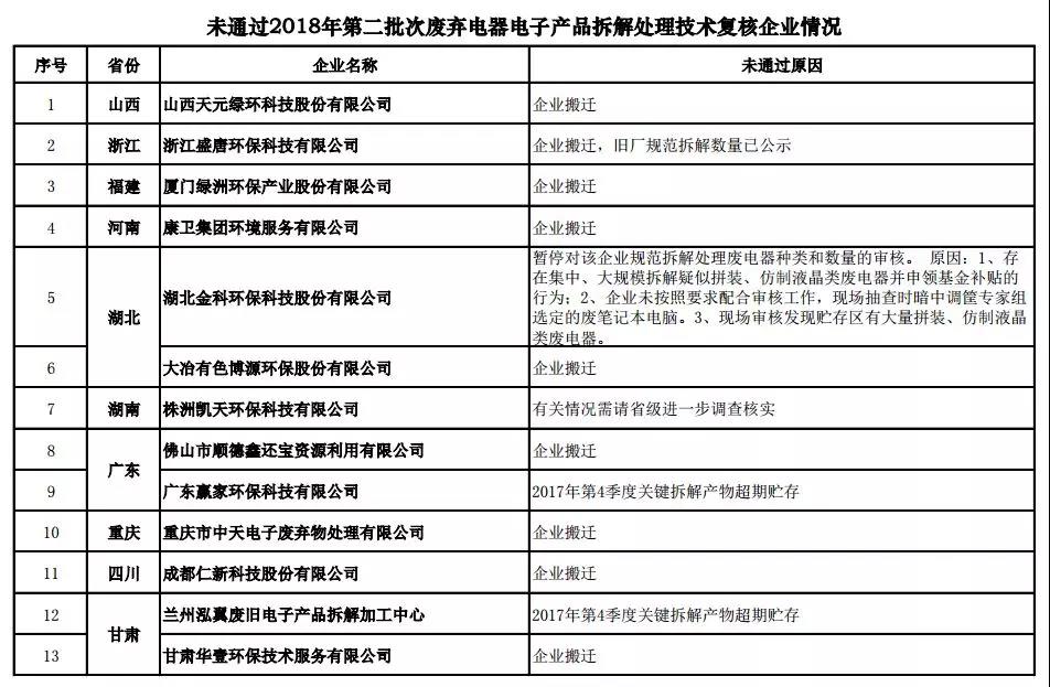 2018年10月15日,受生態(tài)環(huán)境部委托,部固管中心發(fā)布了《關(guān)于2018年第二批次廢棄電子產(chǎn)品拆解處理技術(shù)復(fù)核情況的公示》。