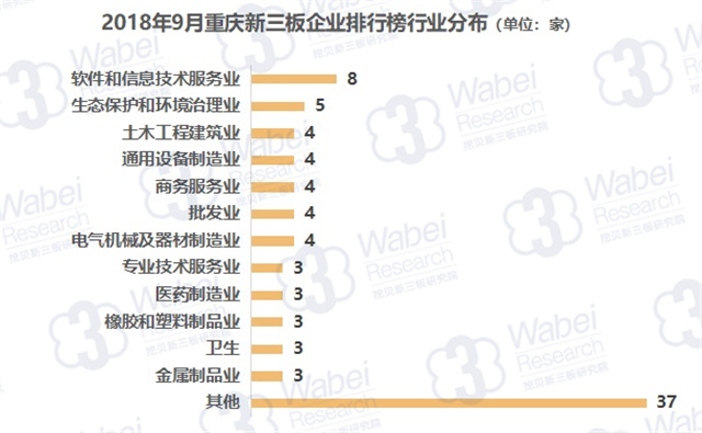 從行業(yè)分布來(lái)看,軟件和信息技術(shù)服務(wù)業(yè)的上榜企業(yè)數(shù)量最多,有8家企業(yè);其次是生態(tài)保護(hù)和環(huán)境治理業(yè),有5家企業(yè);土木工程建筑業(yè)、通用設(shè)備制造業(yè)等多個(gè)行業(yè)排名第三,均有4家企業(yè)。(來(lái)源:挖貝新三板研究院)