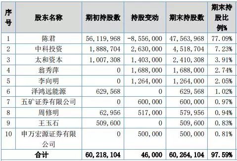 2017年年報顯示,公司股東人數(shù)為40戶,前十大股東中,多名機構(gòu)股東上榜,包括中科投資、太和資本以及證券公司五礦證券、申萬宏源證券等。