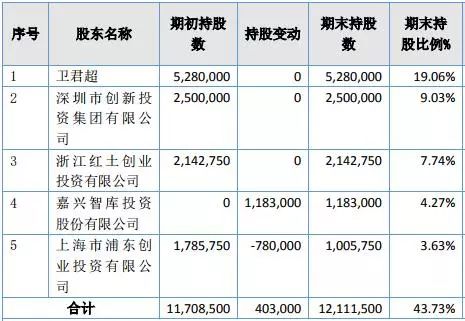 在掛牌新三板前,深圳市創(chuàng)新投資集團(tuán)、紅土創(chuàng)投、上海市浦東創(chuàng)投三家創(chuàng)投機(jī)構(gòu)早已投資入股,且位居公司前四大股東。深圳市創(chuàng)新投持股10%,僅次于大股東衛(wèi)君超。