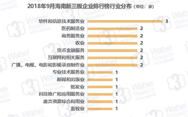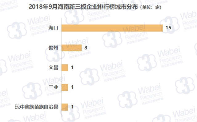 截止到2018年9月30日,新三板共有10946家掛牌公司,海南有39家新三板企業(yè),占比0.4%;其中21家企業(yè)有市值,占比53.8%。