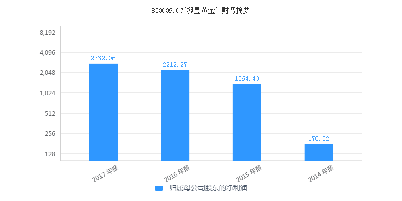 掛牌以來,昶昱黃金業(yè)績(jī)穩(wěn)健增長(zhǎng),2015-2017年分別實(shí)現(xiàn)凈利潤(rùn)1364.40萬(wàn)元、2212.27萬(wàn)元和2762.06萬(wàn)元。