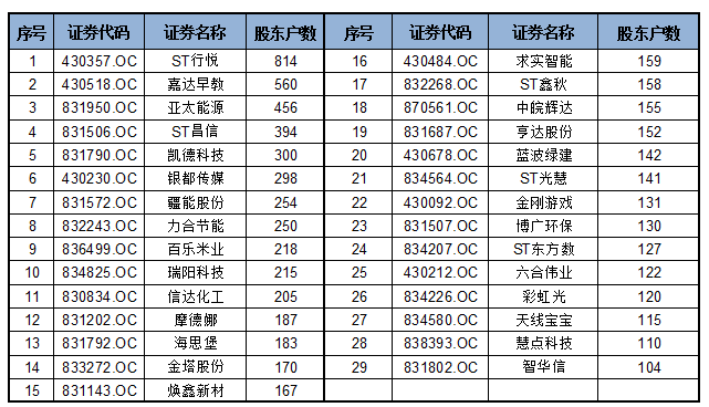 此外,有29家掛牌公司股東人數(shù)超過100人,名單詳見下表: