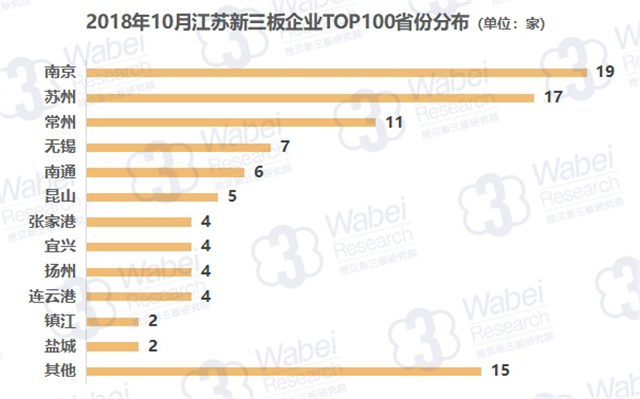 截至2018年10月31日,新三板共有10892家掛牌公司,江蘇有1301家新三板企業(yè),占比11.9%;其中728家企業(yè)有市值,占比56%。