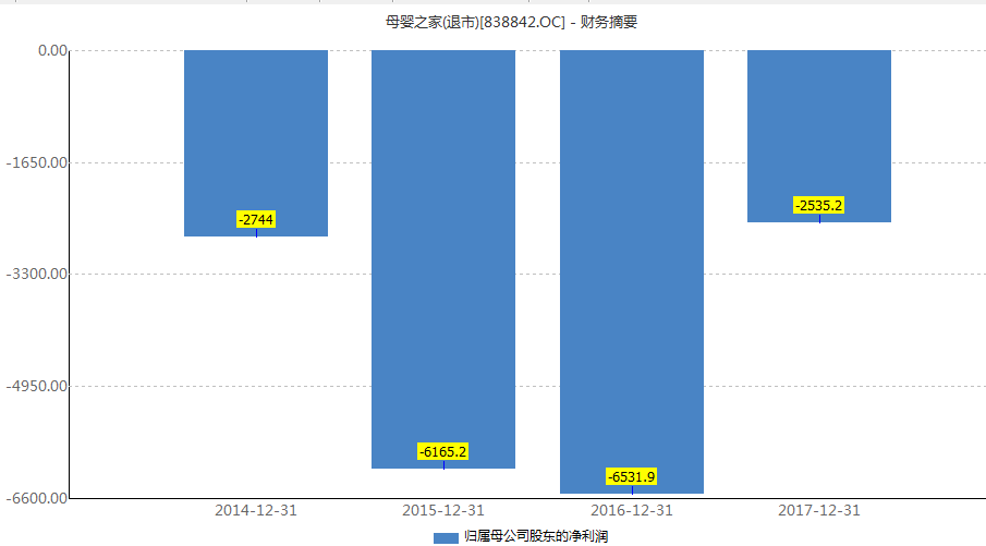 2014-2017年,母嬰之家營(yíng)業(yè)收入先升后降,分別實(shí)現(xiàn)25,325.9萬元、43,900.1萬元、19,974.9萬元和5,864.0萬元。同期,公司歸母凈利潤(rùn)分別為-2,744.0萬元、-6,165.2萬元、-6,531.9萬元和-2,535.2萬元。