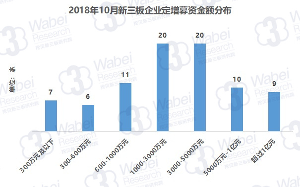 挖貝新三板研究院最新出爐的《2018年10月新三板企業(yè)定增募資報(bào)告》顯示,上月,天士營(yíng)銷(872087)募資金額最大,為5.2億元;慶泉寵物(871608)募資金額最小,為90萬元。