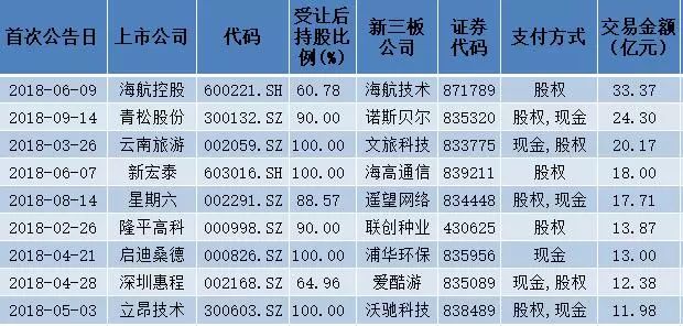 上市公司海航控股計(jì)劃并購(gòu)海航技術(shù)61%的股權(quán),涉及金額33.4億元,海航技術(shù)已于今年4月終止掛牌新三板。值得一提的是,同于11月9日,海航控股宣布該并購(gòu)事項(xiàng)終止。