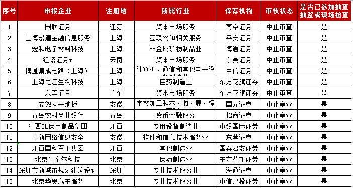本周終止IPO企業(yè)名單并未發(fā)生改變。