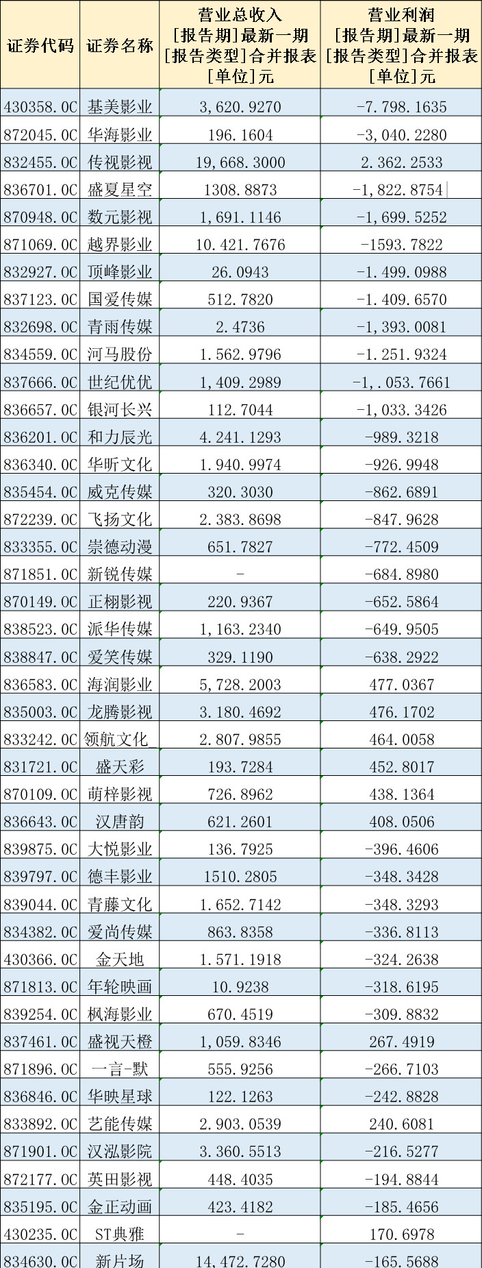 根據(jù)最新披露的半年報(bào),有64家新三板影視股處于虧損狀態(tài),占比52%。
