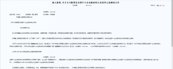 近期,多個(gè)明星參股影視公司從新三板摘牌。比如,10月23日,胡歌、古力娜扎參股的唐人影視發(fā)布《關(guān)于公司股票在全國(guó)中小企業(yè)股份轉(zhuǎn)讓系統(tǒng)終止掛牌的公告》。而早在5月29日,楊冪參股的嘉行傳媒就發(fā)布了新三板終止掛牌的公告。另外,還有周筆暢、韓庚持股的樂(lè)華文化。